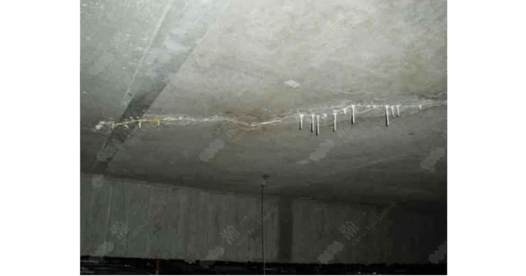 6. 在清潔後的填縫處灌注卓先液,以滲透入混凝土內,封閉底層混凝土的孔隙,以防止持續滲漏